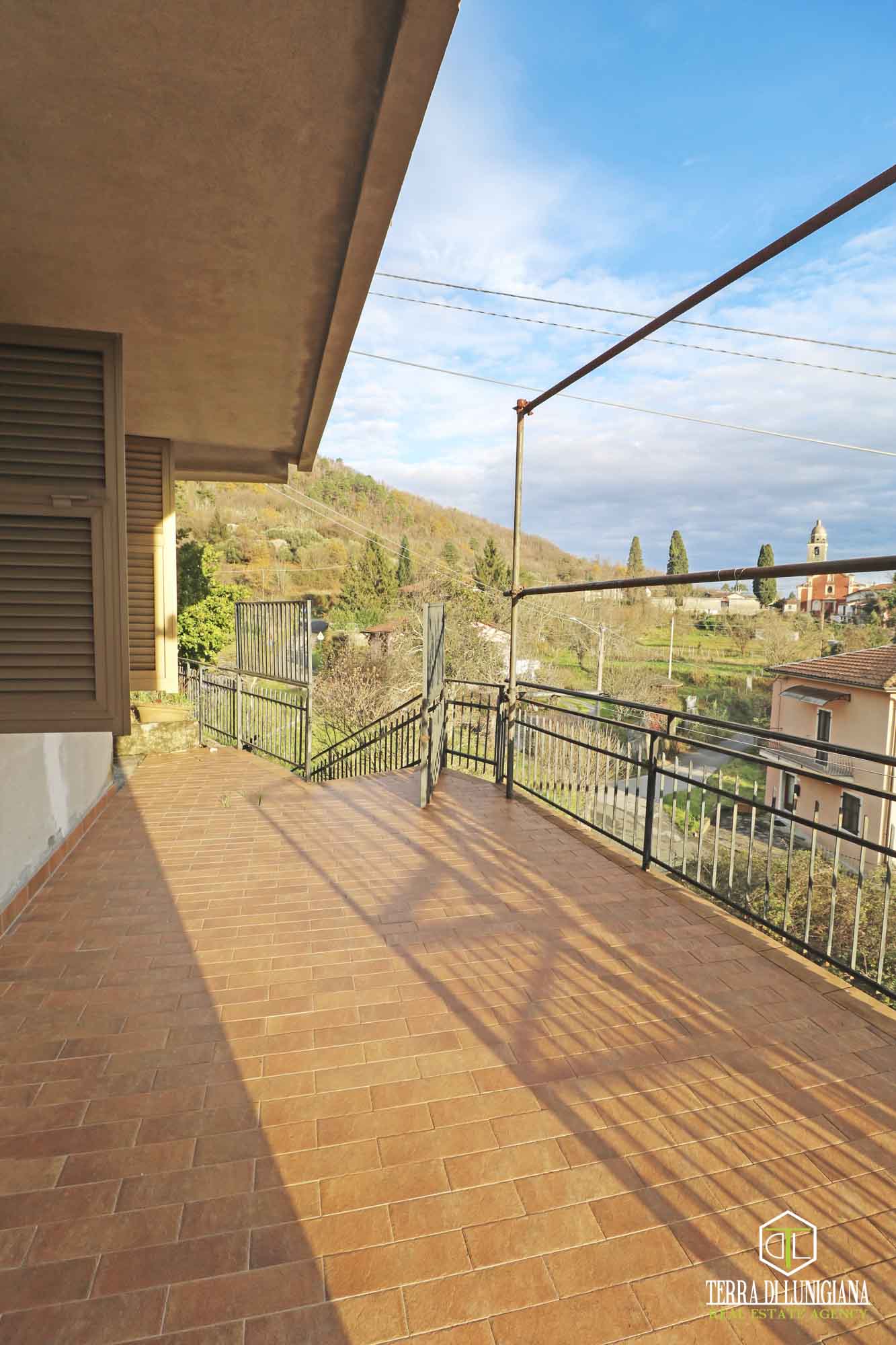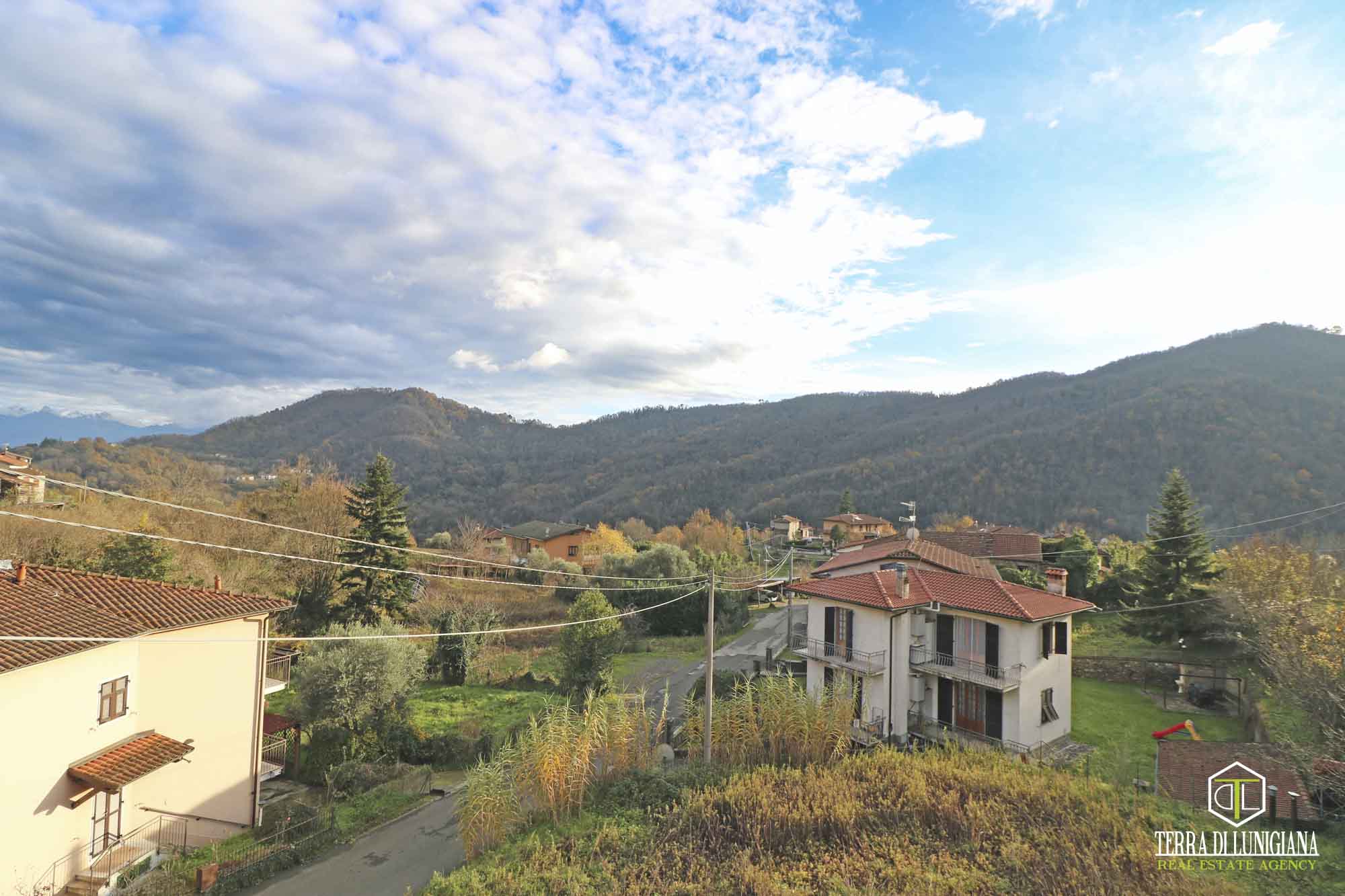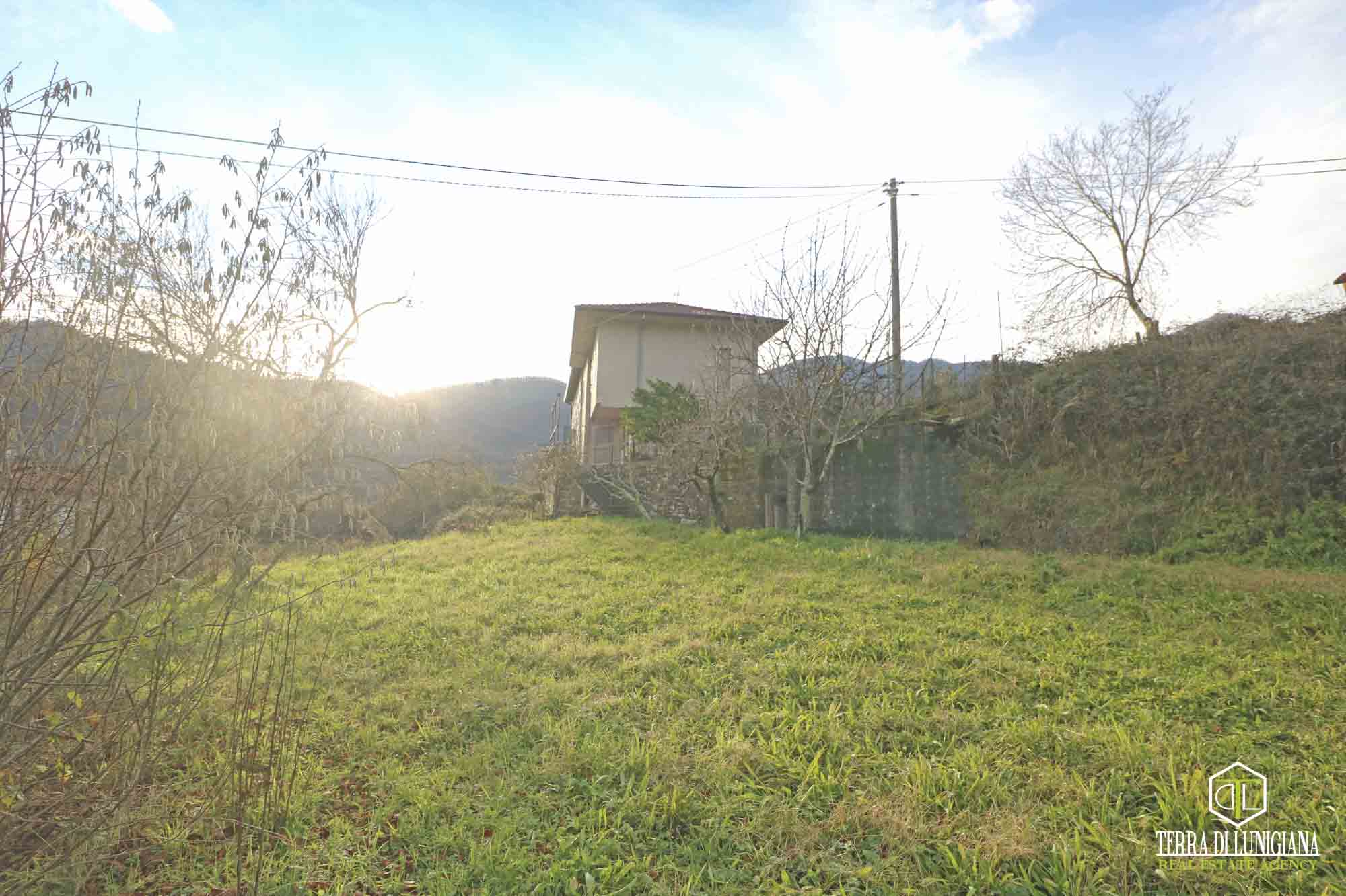 In a splendid, sunny hillside location in the municipality of Tresana, we offer a detached house, free on three sides, surrounded by 1,270 square meters of adjacent land and featuring an open panoramic view of the Lunigiana hills.