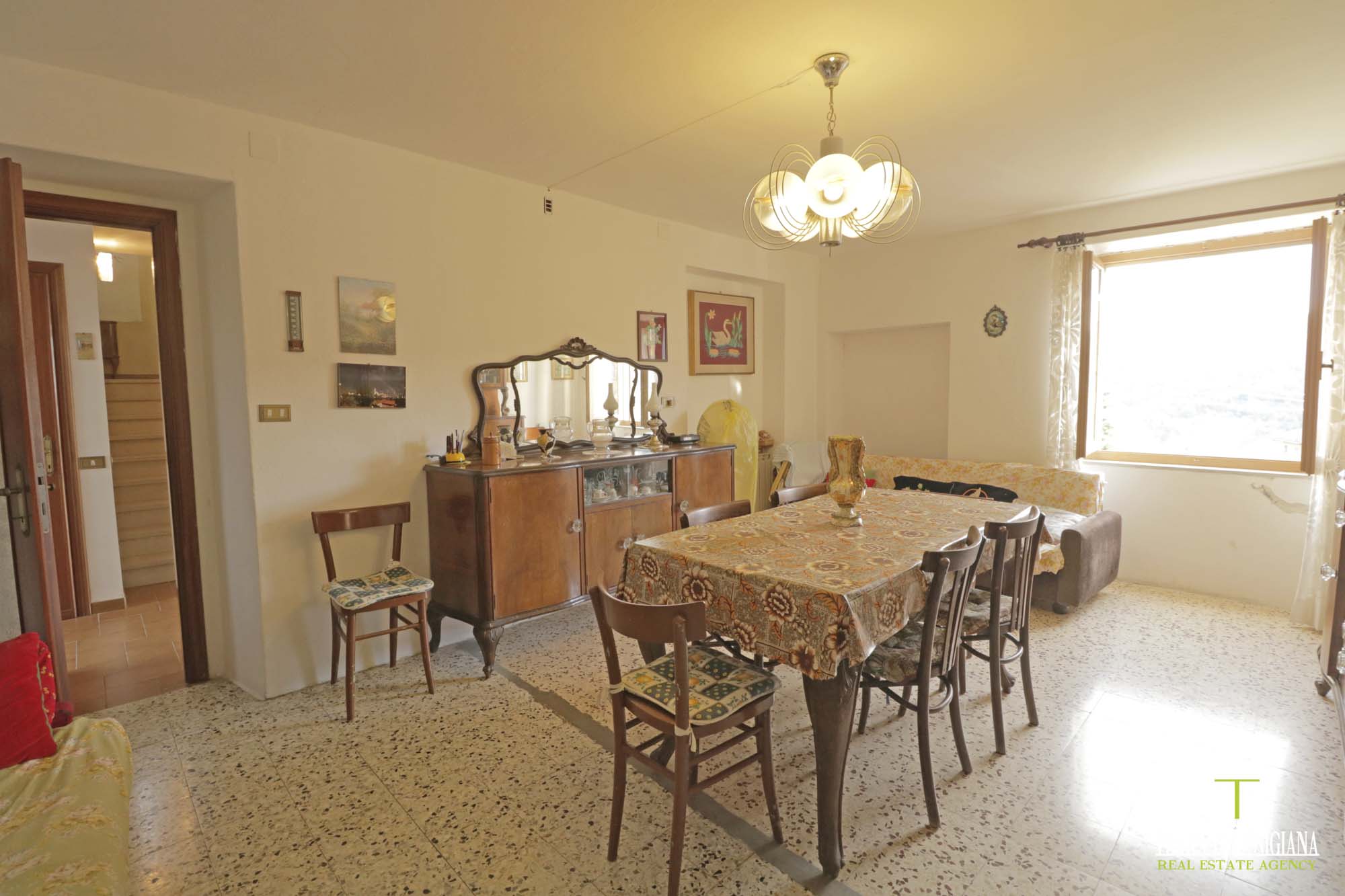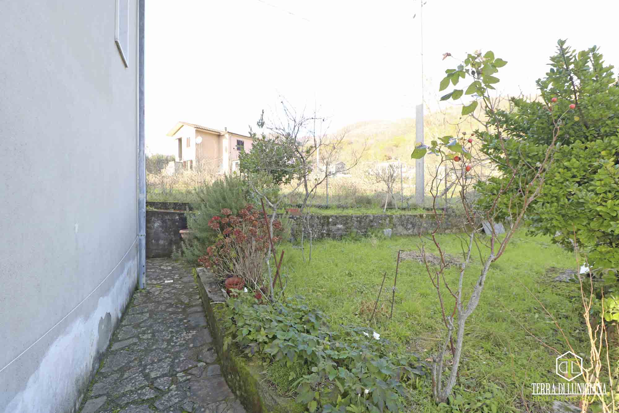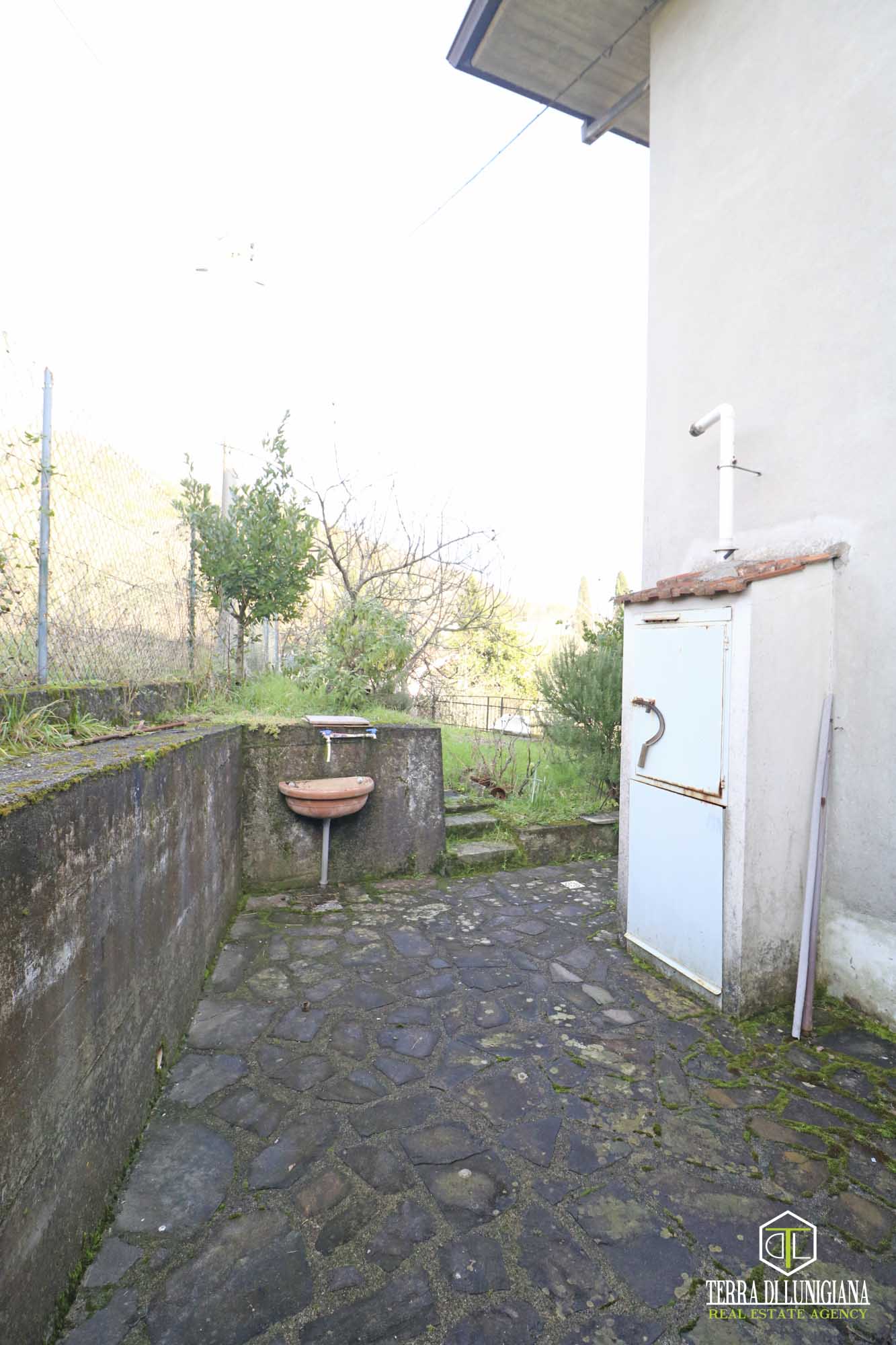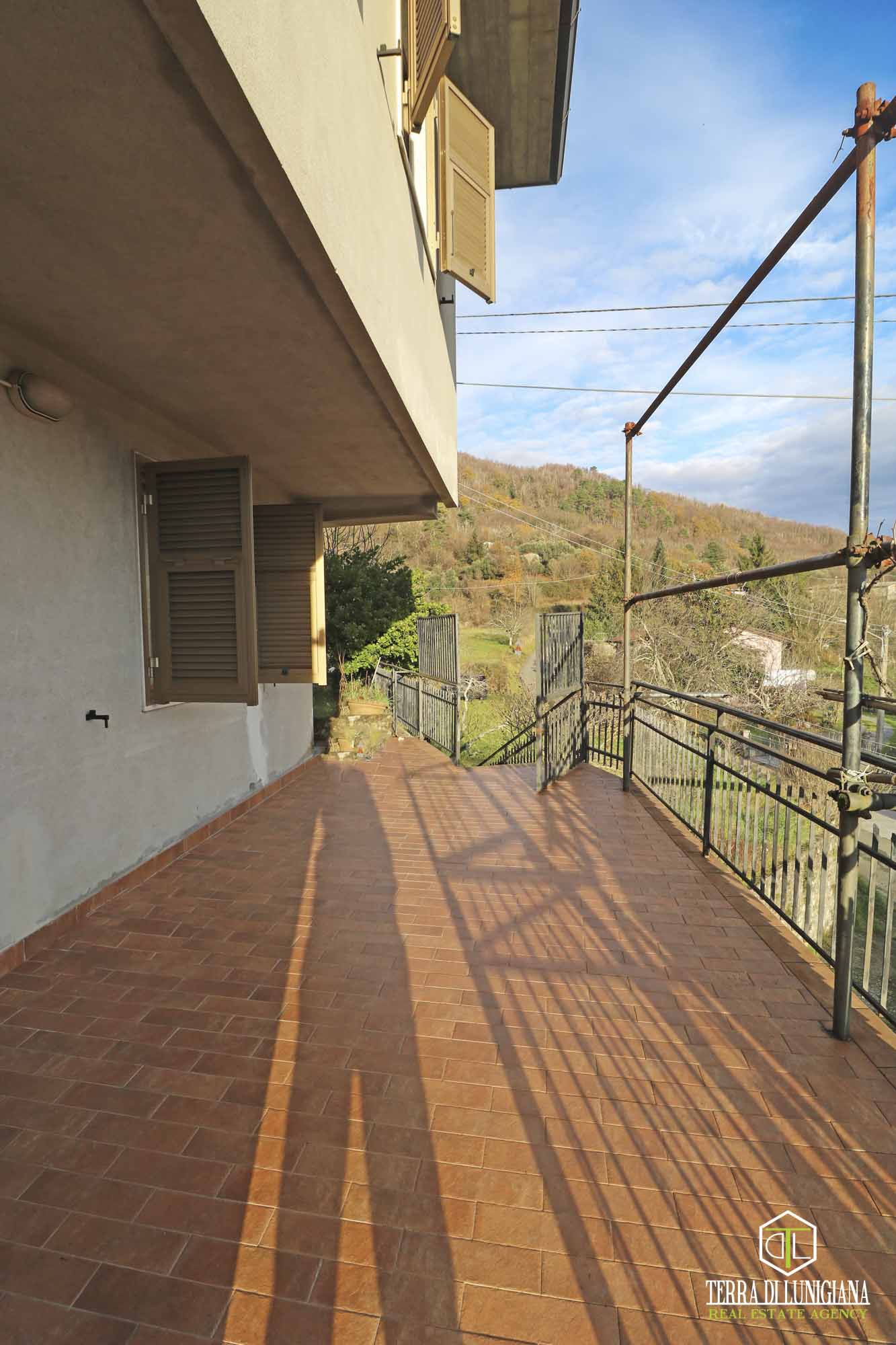 In a splendid, sunny hillside location in the municipality of Tresana, we offer a detached house, free on three sides, surrounded by 1,270 square meters of adjacent land and featuring an open panoramic view of the Lunigiana hills.