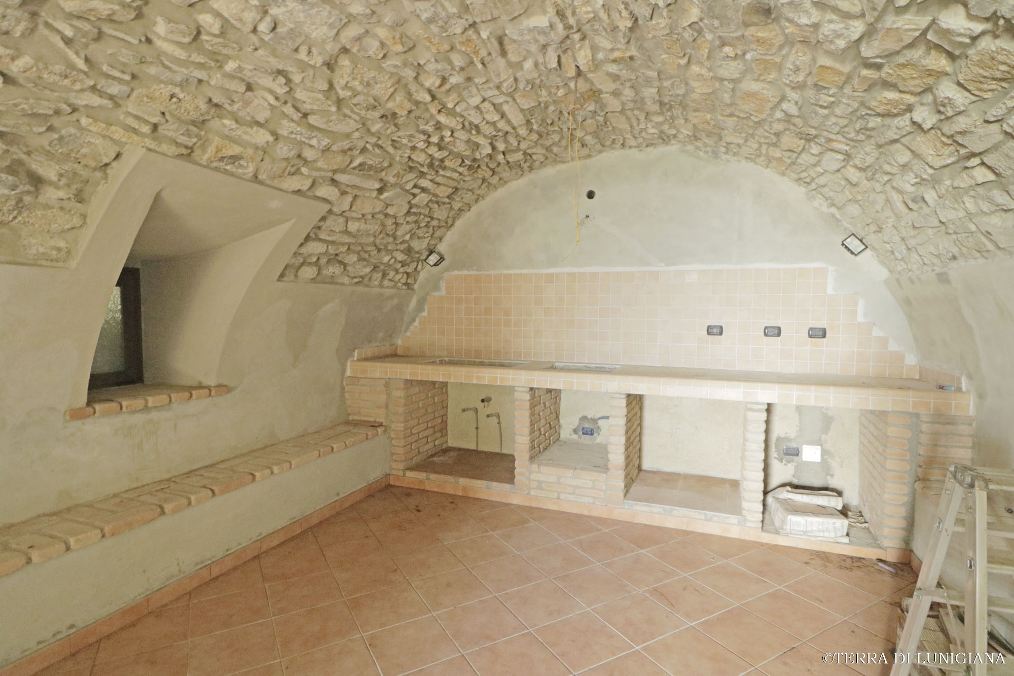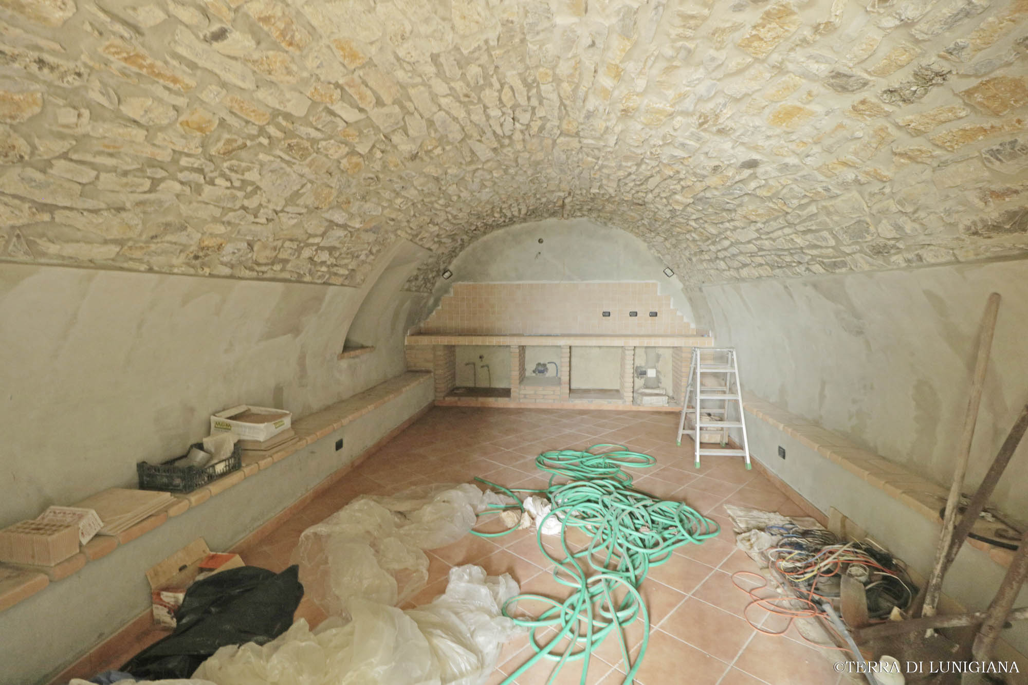 The ground floor features a large entrance hall, a spacious vaulted cellar with a possibility of creating a tavern, and a bathroom. The entire property has been restored. The external area was formerly used as a storage area for agricultural vehicles.